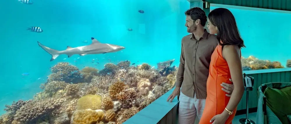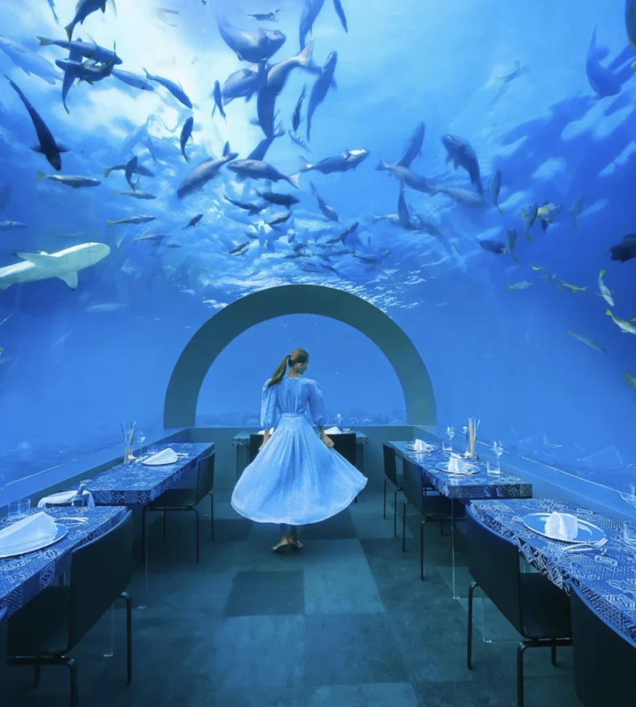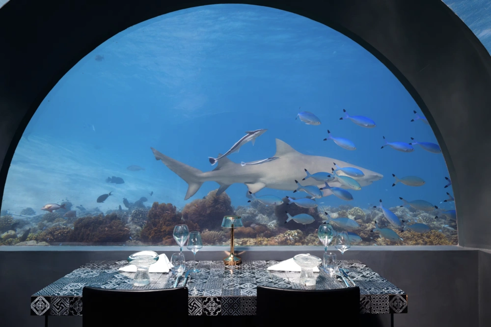 성인전용이라는 점이 주는 강점은 수중 레스토랑에서의 특별한 식사 경험에서 더욱 부각된다. 조용한 분위기 속에 바닷속 레스토랑이라는 신비로움은 배가되며, 해저터널 속 사방이 바다로 둘러싸인 곳에서 즐기는 파인다이닝은 최고의 신혼여행 경험으로 남기에 충분하다. 유앤미 몰디브의 올인클루시브에는 프리미엄 주류인 샴페인도 포함되어 있으니, 액티브함 한스푼 더한 허니문 감성 물씬 나는 곳에서 샴페인 프리플로우의 파티도 놓치지 말 것.